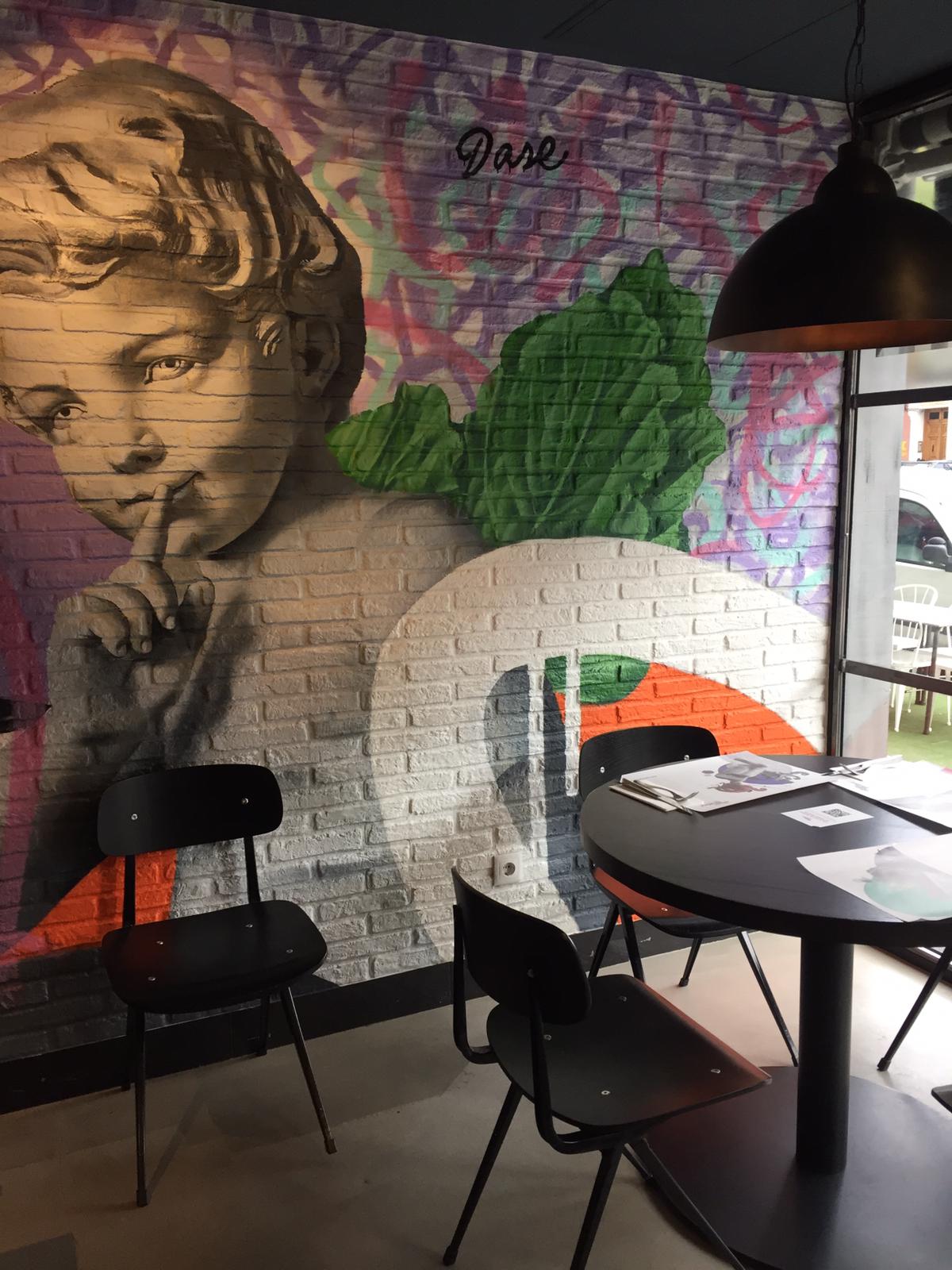 Dos artistas han sido los encargados de dar vida al interior del local. Diego Vicente (@diegovicente__) y Marc Álvarez (@dase.es) han plasmado su arte en las paredes, el primero realizando un mural de inspiración venusiana y el segundo, un mural realista.