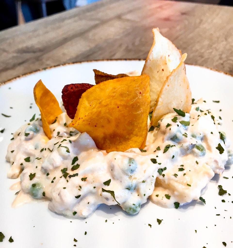 Probamos la Ensaladilla Rusa con chips vegetales, rica también.