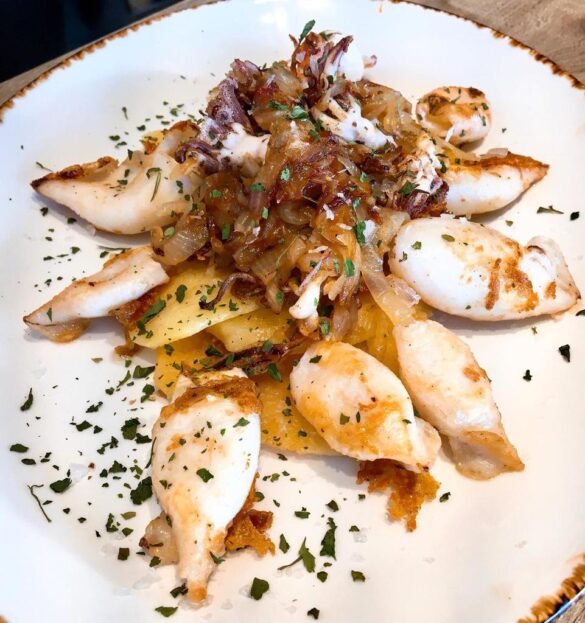 Chipirones a la planchaDe segundos nos decantamos por Los Chipirones a la Plancha con cebolla frita y patatas panaderas. ¡Uno de nuestros favoritos junto con la parrillada de verduras! Y la Pata de Pulpo a la Parrilla, nuevo en carta. ¡Estaba súper tierno!