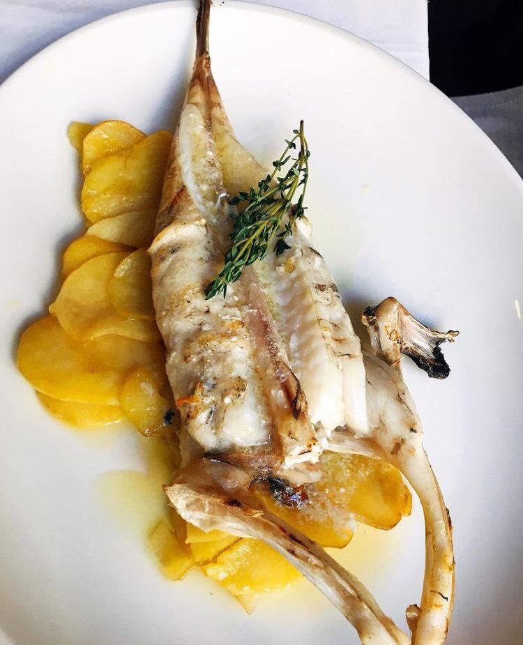 Nos propusieron probar alguno de los platos que tenían fuera de carta. Decidimos empezar por unos huevos rotos con gambas de cristal, unas alcachofas confitadas que nos parecieron deliciosas y unos pimientos asados al carbón que eran realmente sabrosos. Fue todo un acierto, pero la próxima vez que vayamos no dejaremos de probar sus guisos, porque nos llamaron especialmente la atención sus verdinas en salsa verde con almejas y sus callos con morro y pata. A continuación, degustamos el rape con patatas panaderas y el rabo de toro cobre parmentier al oloroso y, en ambos casos, el producto y la elaboración eran excepcionales. Para terminar, probamos sus migas con chocolate y helado de vainilla, un momento muy disfrutón y muy dulce previo a la sobremesa, aunque la próxima vez también dejaremos hueco para probar su sugerente mousse de madroño y su helado de violeta con caramelo.